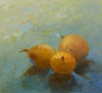 2017kakivrucht met peertjes in blauwe lijst